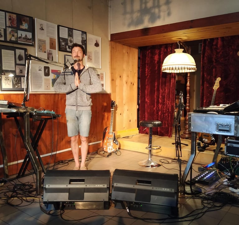 Dans l'intimité d'un salon ou le théâtre de verdure d'un jardin, accueillez Franz ou Radio Edith chez vous le temps d'un spectacle. Vous offrez au public comme à l'artiste une proximité précieuse et une occasion rare d'échanger ensuite, surtout si vous en profitez pour prolonger le plaisir autour d'un apéro partagé. Nous fournissons l'environnement technique son et lumière. N'hésitez pas à nous contacter pour en savoir plus.